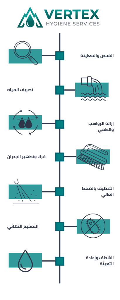 في “فيرتكس” لخدمات النظافة، تضمن عملية التنظيف الشاملة لدينا أن مياهكم آمنة تماماً: